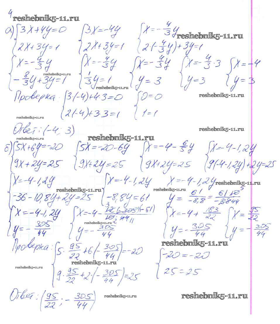 Готовая домашняя работа с ответами по Алгебре за 7 класс Ключникова, Комиссарова Рабочая тетрадь УМК Экзамен 2013 ФГОС - §12. Метод подстановки 4