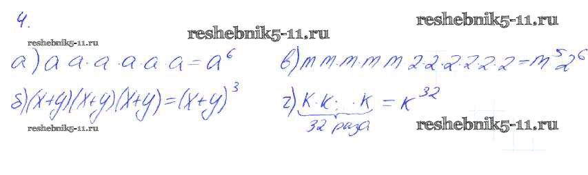 Готовая домашняя работа с ответами по Алгебре за 7 класс Ключникова, Комиссарова Рабочая тетрадь УМК Экзамен 2013 ФГОС - §15. Что такое степень с натуральным показателем 4