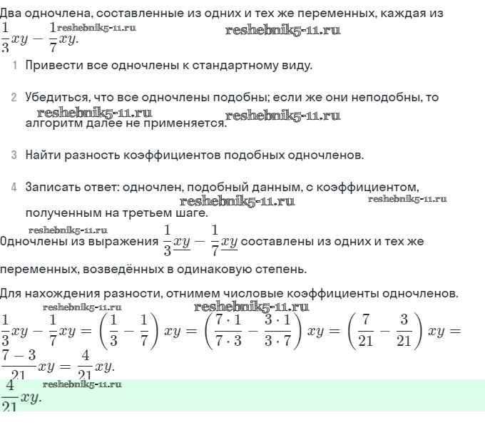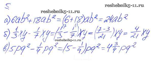 Готовая домашняя работа с ответами по Алгебре за 7 класс Ключникова, Комиссарова Рабочая тетрадь УМК Экзамен 2013 ФГОС - §21. Сложение и вычитание одночленов 5