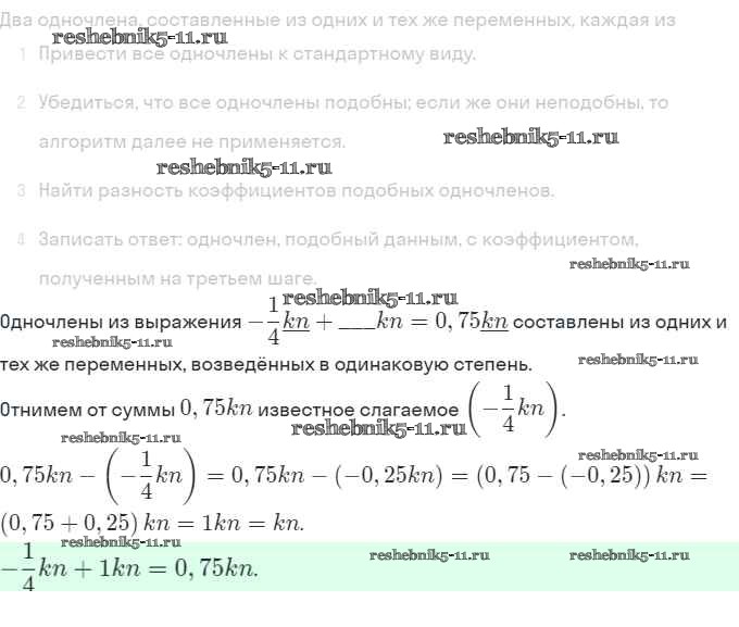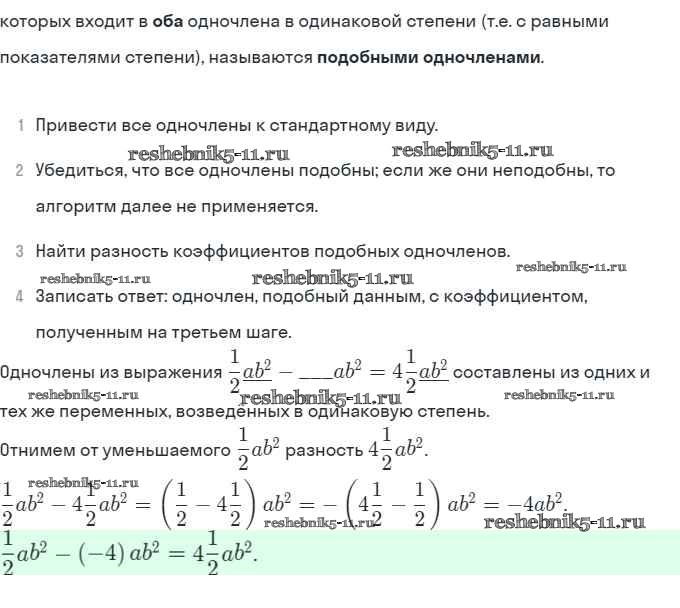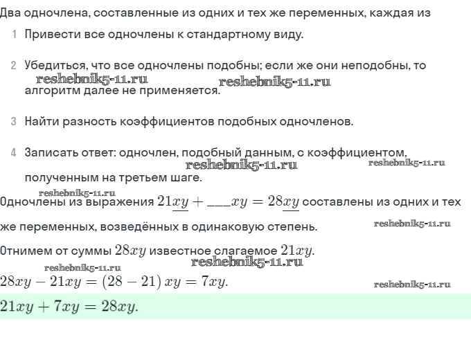 Готовая домашняя работа с ответами по Алгебре за 7 класс Ключникова, Комиссарова Рабочая тетрадь УМК Экзамен 2013 ФГОС - §21. Сложение и вычитание одночленов 7
