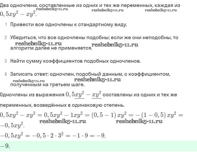 Готовая домашняя работа с ответами по Алгебре за 7 класс Ключникова, Комиссарова Рабочая тетрадь УМК Экзамен 2013 ФГОС - §21. Сложение и вычитание одночленов 8