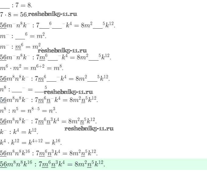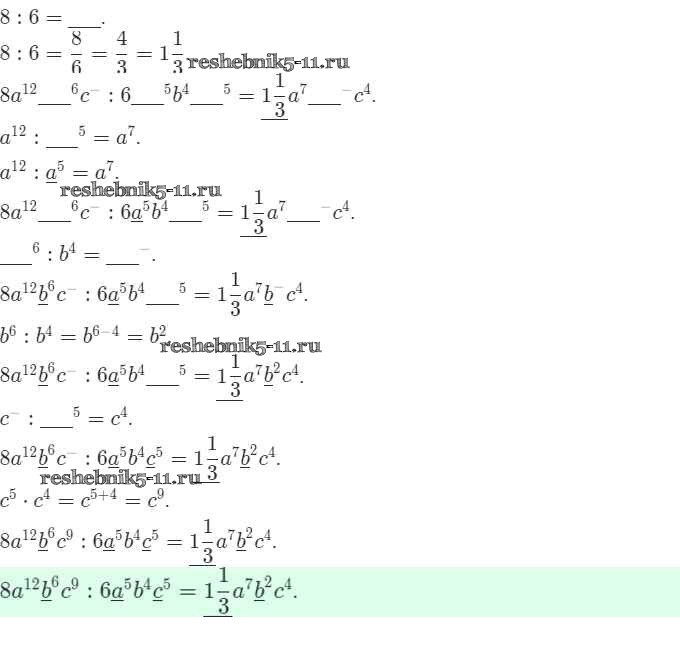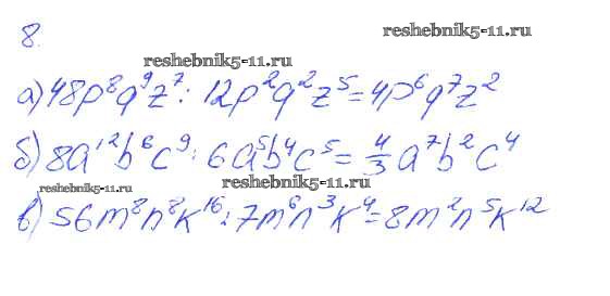 Готовая домашняя работа с ответами по Алгебре за 7 класс Ключникова, Комиссарова Рабочая тетрадь УМК Экзамен 2013 ФГОС - §23. Деление одночлена на одночлен 8