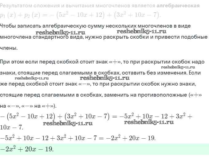 Готовая домашняя работа с ответами по Алгебре за 7 класс Ключникова, Комиссарова Рабочая тетрадь УМК Экзамен 2013 ФГОС - §25. Сложение и вычитание многочленов 4
