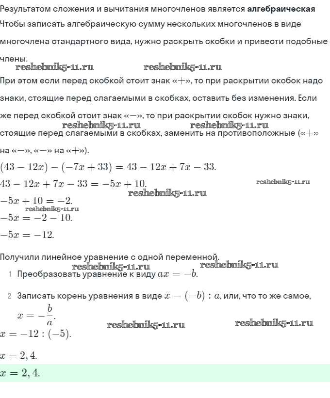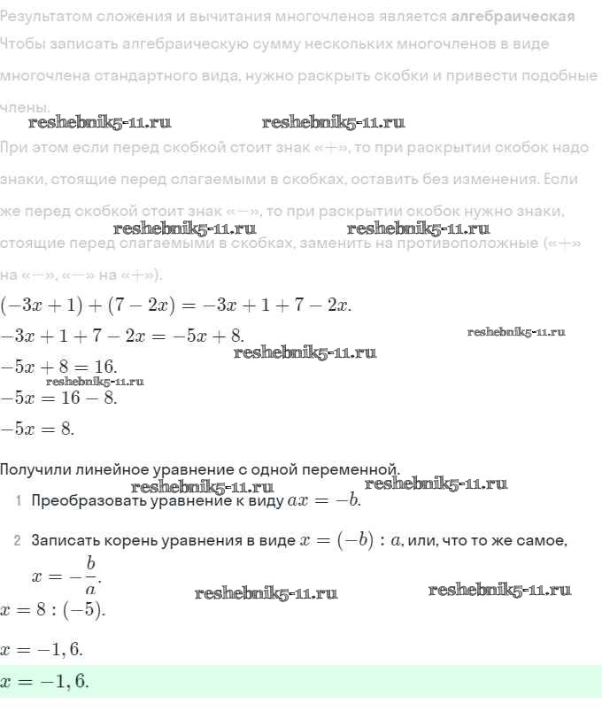 Готовая домашняя работа с ответами по Алгебре за 7 класс Ключникова, Комиссарова Рабочая тетрадь УМК Экзамен 2013 ФГОС - §25. Сложение и вычитание многочленов 5