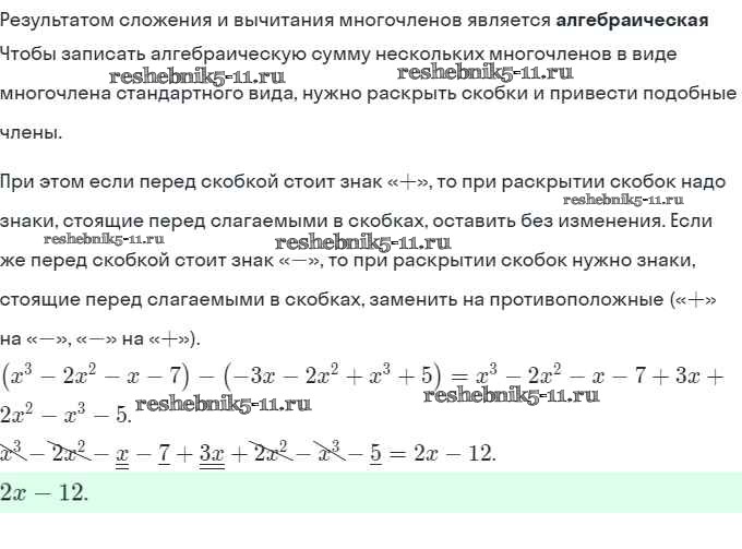 §25. Сложение и вычитание многочленов