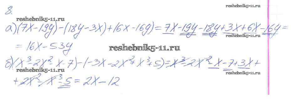 Готовая домашняя работа с ответами по Алгебре за 7 класс Ключникова, Комиссарова Рабочая тетрадь УМК Экзамен 2013 ФГОС - §25. Сложение и вычитание многочленов 8
