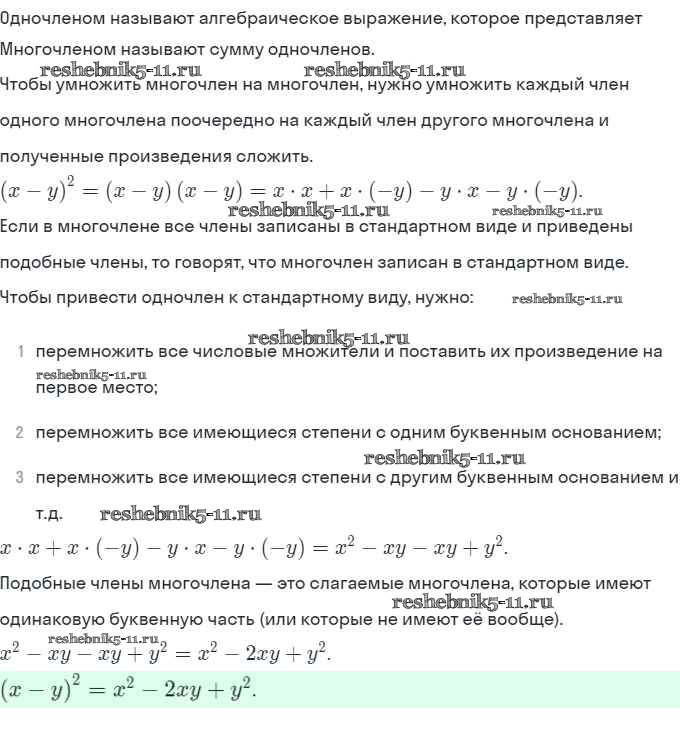 Готовая домашняя работа с ответами по Алгебре за 7 класс Ключникова, Комиссарова Рабочая тетрадь УМК Экзамен 2013 ФГОС - §27. Умножение многочлена на многочлен 8