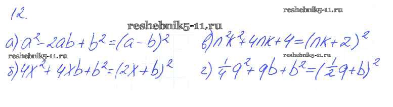 Готовая домашняя работа с ответами по Алгебре за 7 класс Ключникова, Комиссарова Рабочая тетрадь УМК Экзамен 2013 ФГОС - §28. Формулы сокращенного умножения 12