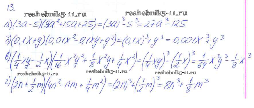 Готовая домашняя работа с ответами по Алгебре за 7 класс Ключникова, Комиссарова Рабочая тетрадь УМК Экзамен 2013 ФГОС - §28. Формулы сокращенного умножения 13