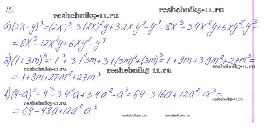 Готовая домашняя работа с ответами по Алгебре за 7 класс Ключникова, Комиссарова Рабочая тетрадь УМК Экзамен 2013 ФГОС - §28. Формулы сокращенного умножения 15