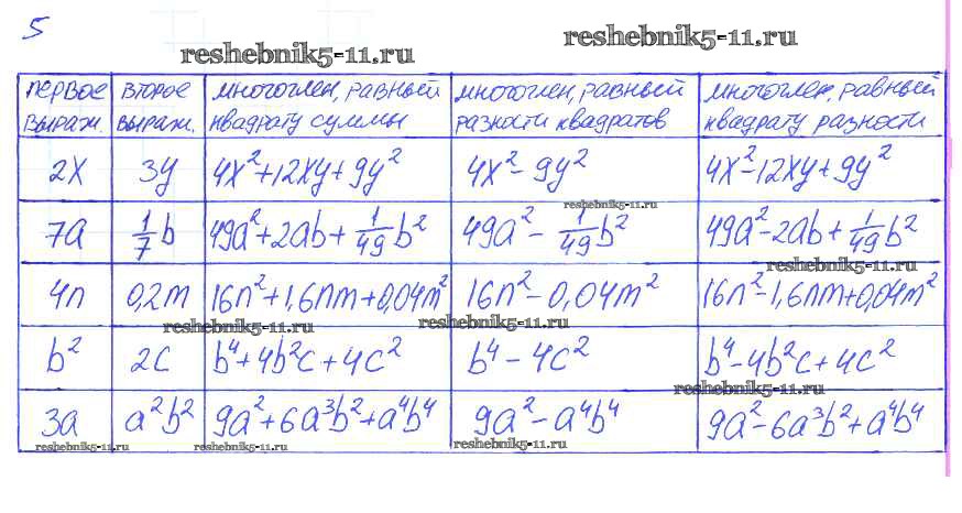 Готовая домашняя работа с ответами по Алгебре за 7 класс Ключникова, Комиссарова Рабочая тетрадь УМК Экзамен 2013 ФГОС - §28. Формулы сокращенного умножения 5