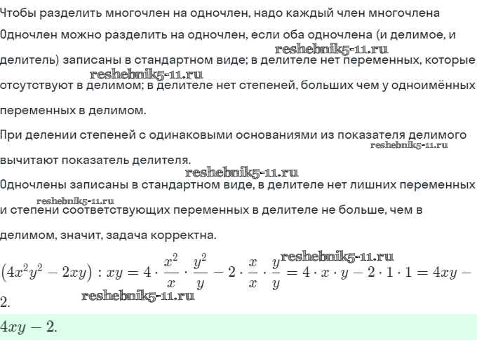 Готовая домашняя работа с ответами по Алгебре за 7 класс Ключникова, Комиссарова Рабочая тетрадь УМК Экзамен 2013 ФГОС - §29. Деление многочлена на одночлен 3