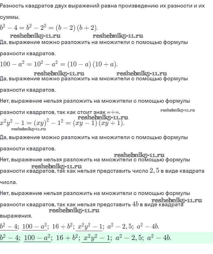 §33. Разложение многочленов на множители с помощью формул сокращенного умножения