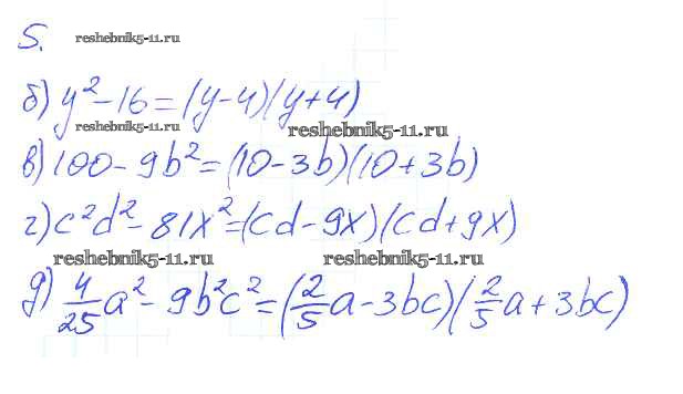 Готовая домашняя работа с ответами по Алгебре за 7 класс Ключникова, Комиссарова Рабочая тетрадь УМК Экзамен 2013 ФГОС - §33. Разложение многочленов на множители с помощью формул сокращенного умножения 5