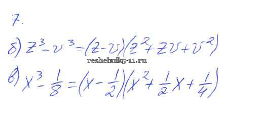 Готовая домашняя работа с ответами по Алгебре за 7 класс Ключникова, Комиссарова Рабочая тетрадь УМК Экзамен 2013 ФГОС - §33. Разложение многочленов на множители с помощью формул сокращенного умножения 7