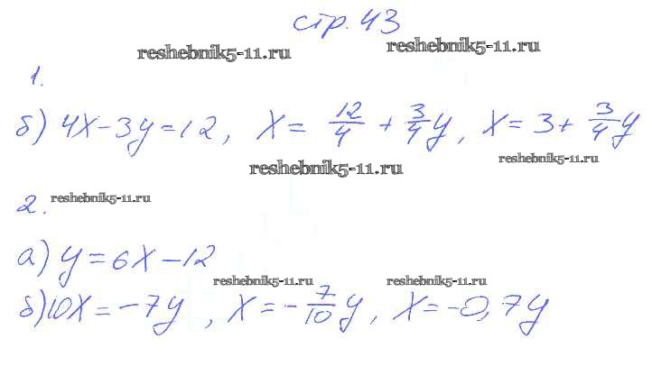 Готовая домашняя работа с ответами по Алгебре за 7 класс Ключникова, Комиссарова Рабочая тетрадь УМК Экзамен 2013 ФГОС - Страницы 43