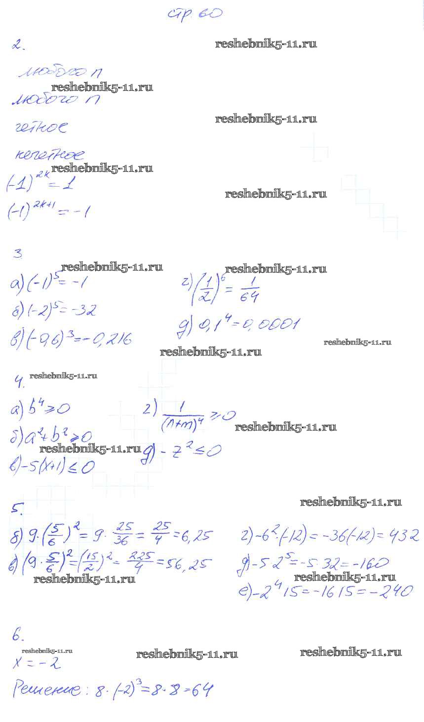 Готовая домашняя работа с ответами по Алгебре за 7 класс Ключникова, Комиссарова Рабочая тетрадь УМК Экзамен 2013 ФГОС - Страницы 60