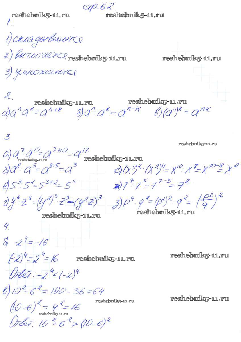 Готовая домашняя работа с ответами по Алгебре за 7 класс Ключникова, Комиссарова Рабочая тетрадь УМК Экзамен 2013 ФГОС - Страницы 62