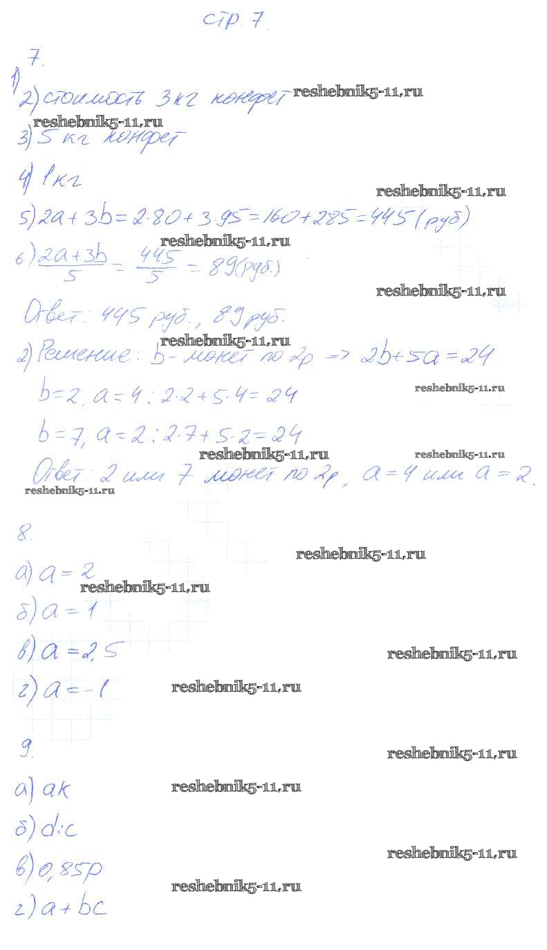 Готовая домашняя работа с ответами по Алгебре за 7 класс Ключникова, Комиссарова Рабочая тетрадь УМК Экзамен 2013 ФГОС - Страницы 7