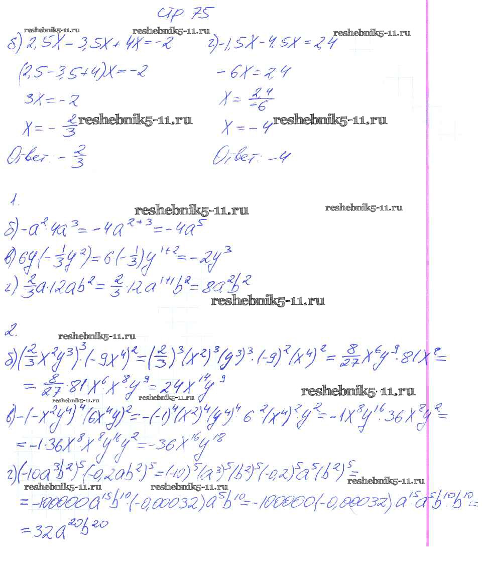 Готовая домашняя работа с ответами по Алгебре за 7 класс Ключникова, Комиссарова Рабочая тетрадь УМК Экзамен 2013 ФГОС - Страницы 75