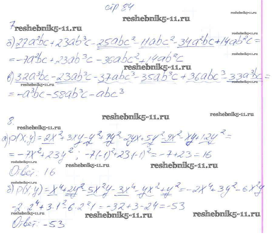 Готовая домашняя работа с ответами по Алгебре за 7 класс Ключникова, Комиссарова Рабочая тетрадь УМК Экзамен 2013 ФГОС - Страницы 84
