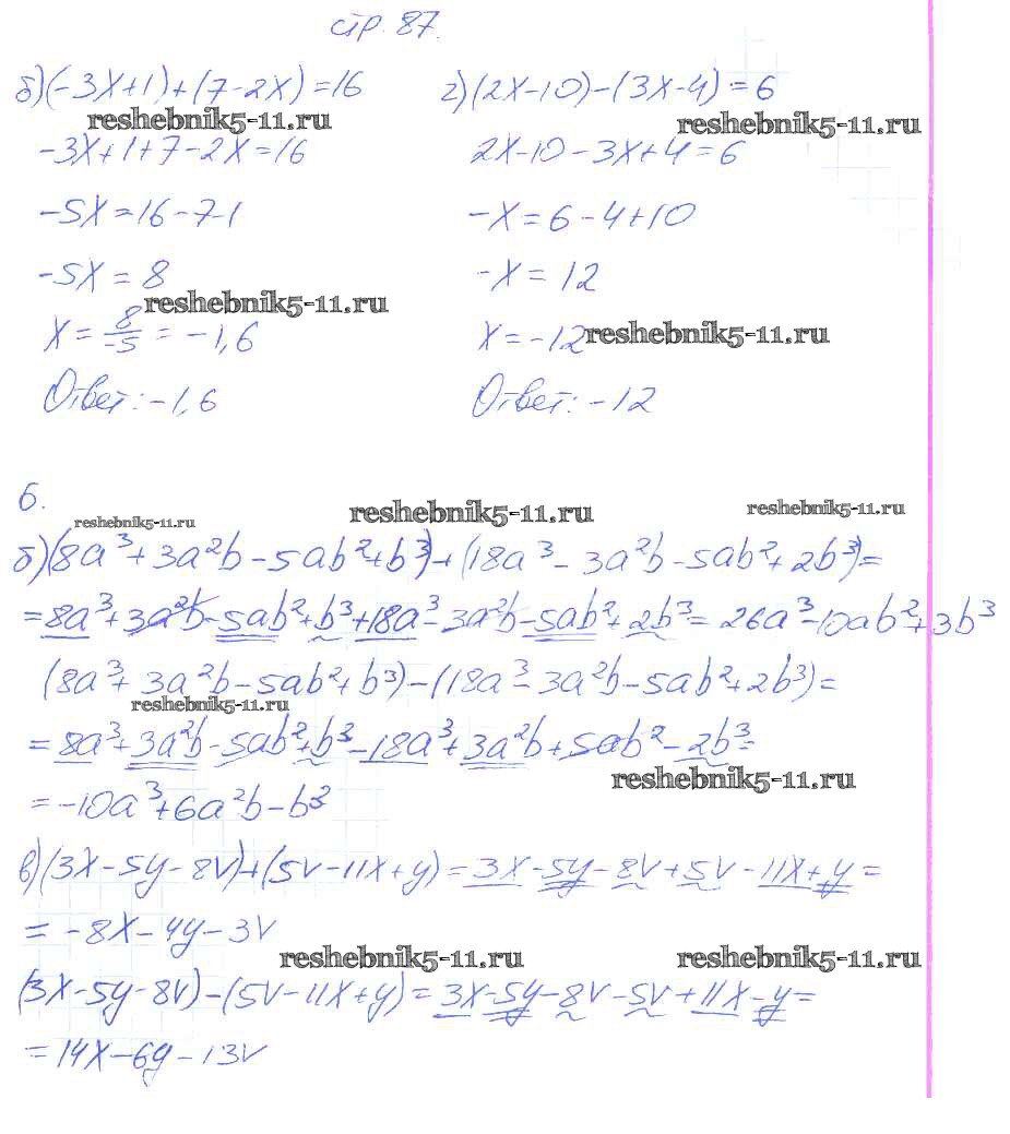 Готовая домашняя работа с ответами по Алгебре за 7 класс Ключникова, Комиссарова Рабочая тетрадь УМК Экзамен 2013 ФГОС - Страницы 87