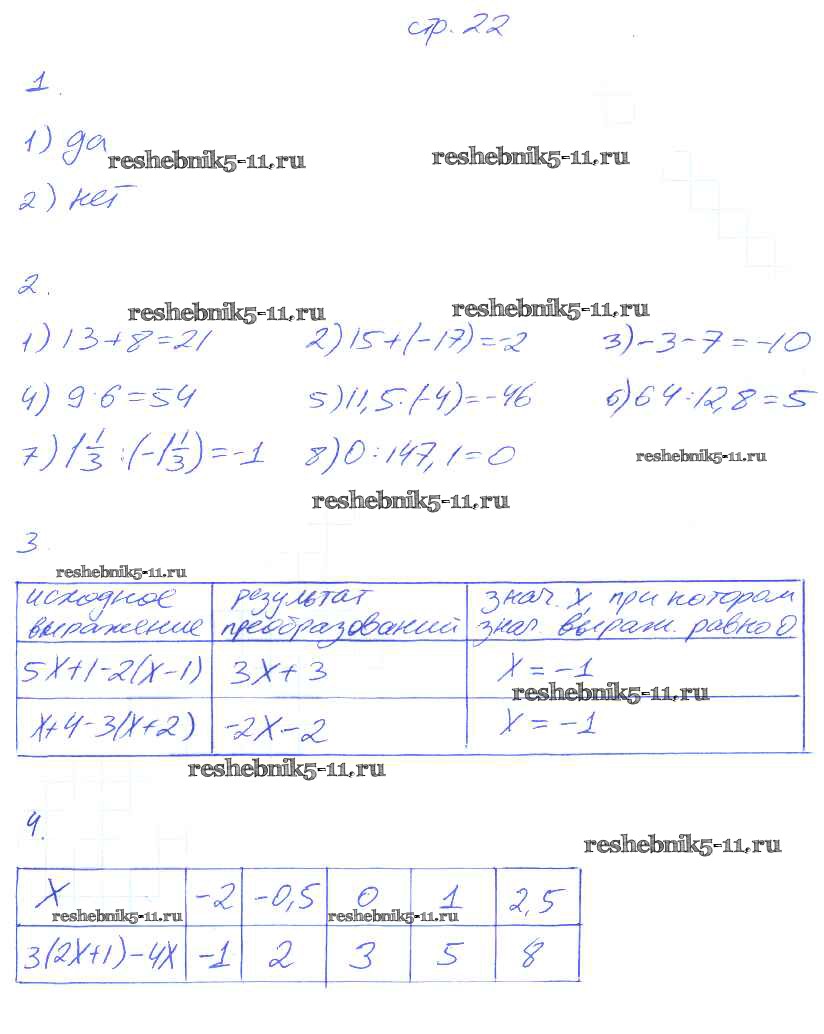 Готовая домашняя работа с ответами по Алгебре за 7 класс Колягин, Ткачева, Федорова, Шабунин Рабочая тетрадь УМК Часть 1, 2 Просвещение 2017 ФГОС - Часть 1 22