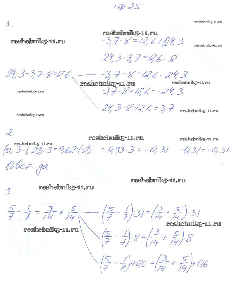 Готовая домашняя работа с ответами по Алгебре за 7 класс Колягин, Ткачева, Федорова, Шабунин Рабочая тетрадь УМК Часть 1, 2 Просвещение 2017 ФГОС - Часть 1 25