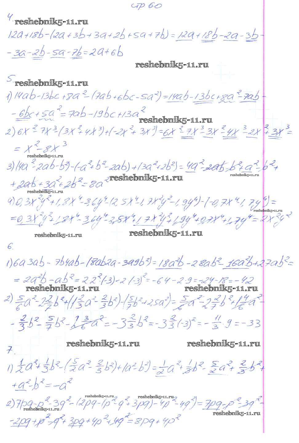 Готовая домашняя работа с ответами по Алгебре за 7 класс Колягин, Ткачева, Федорова, Шабунин Рабочая тетрадь УМК Часть 1, 2 Просвещение 2017 ФГОС - Часть 1 60