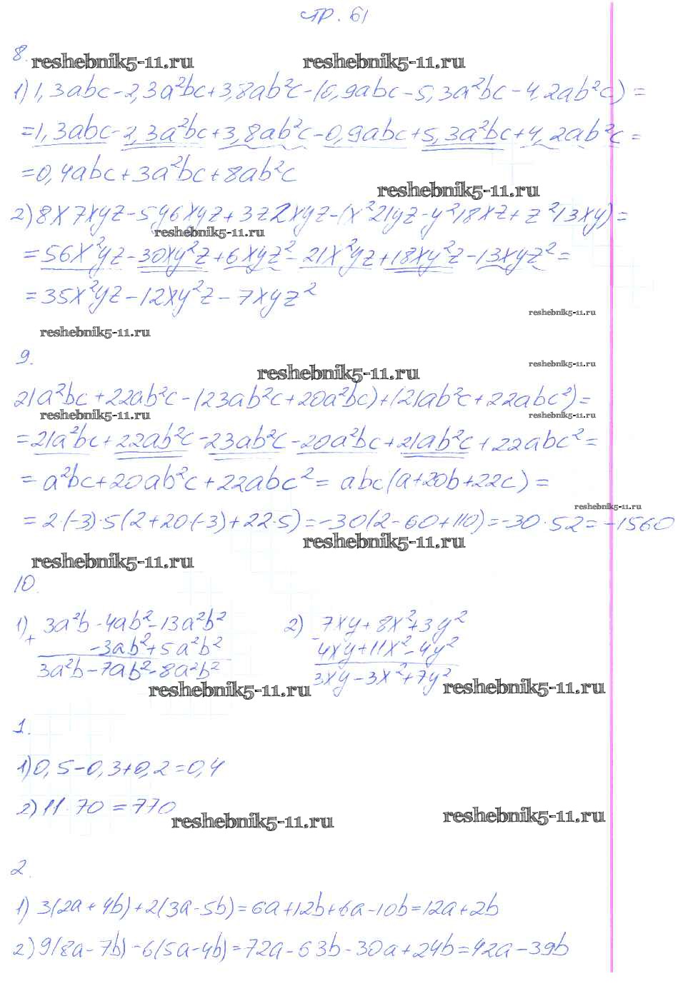 Готовая домашняя работа с ответами по Алгебре за 7 класс Колягин, Ткачева, Федорова, Шабунин Рабочая тетрадь УМК Часть 1, 2 Просвещение 2017 ФГОС - Часть 1 61