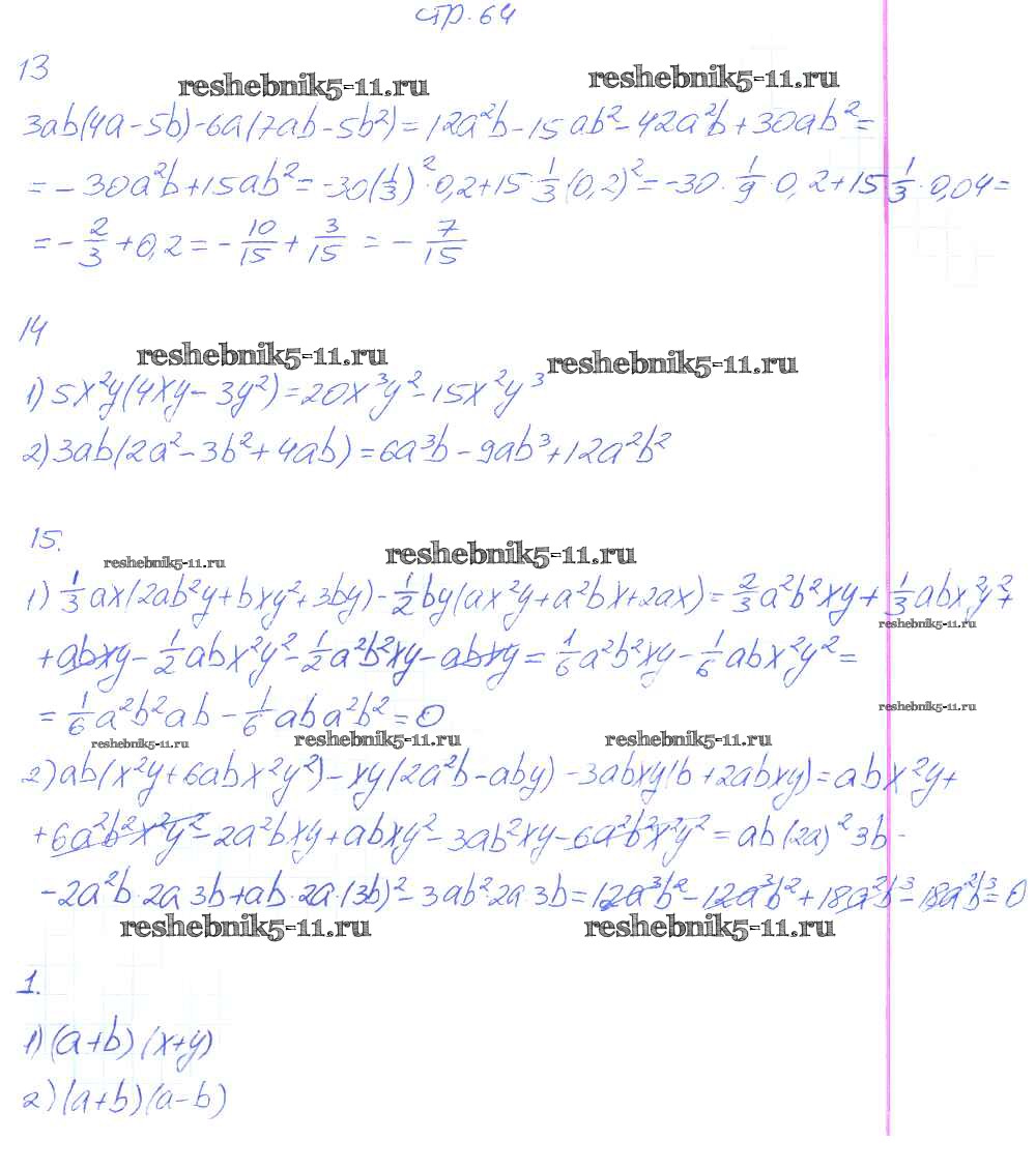 Готовая домашняя работа с ответами по Алгебре за 7 класс Колягин, Ткачева, Федорова, Шабунин Рабочая тетрадь УМК Часть 1, 2 Просвещение 2017 ФГОС - Часть 1 64