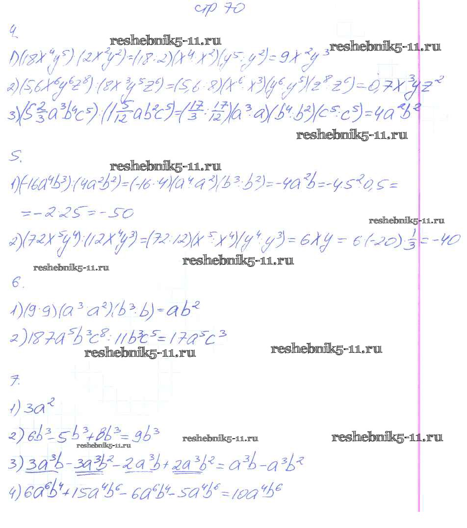 Готовая домашняя работа с ответами по Алгебре за 7 класс Колягин, Ткачева, Федорова, Шабунин Рабочая тетрадь УМК Часть 1, 2 Просвещение 2017 ФГОС - Часть 1 70