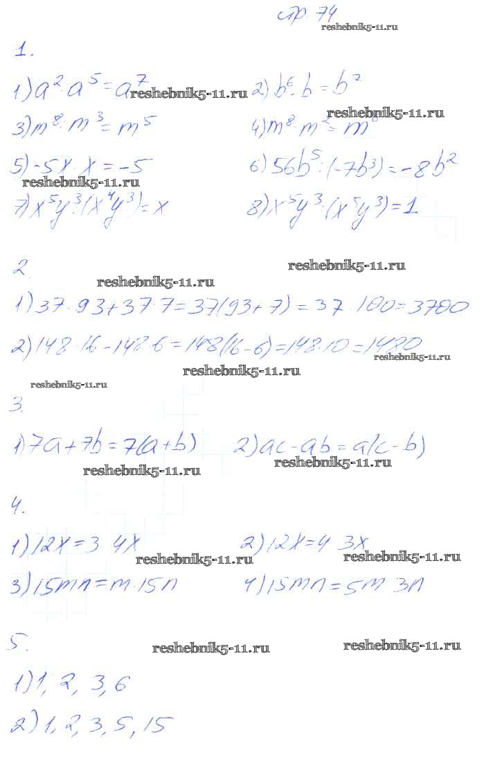 Готовая домашняя работа с ответами по Алгебре за 7 класс Колягин, Ткачева, Федорова, Шабунин Рабочая тетрадь УМК Часть 1, 2 Просвещение 2017 ФГОС - Часть 1 74