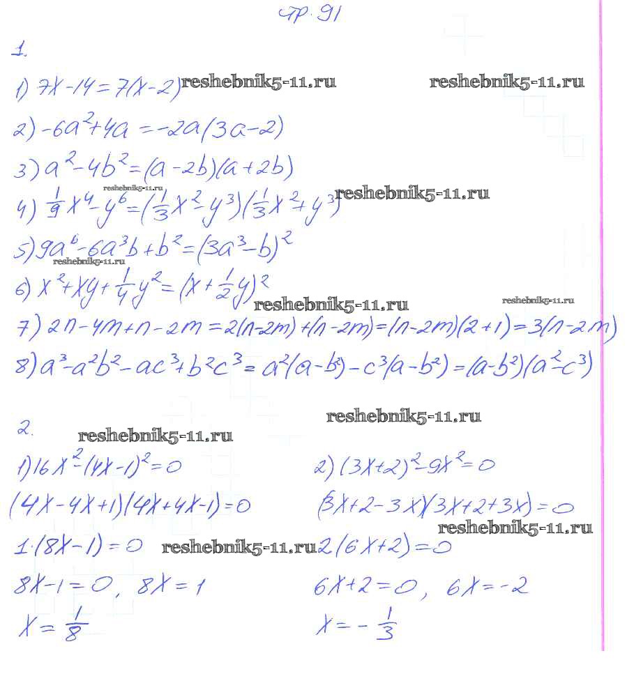Готовая домашняя работа с ответами по Алгебре за 7 класс Колягин, Ткачева, Федорова, Шабунин Рабочая тетрадь УМК Часть 1, 2 Просвещение 2017 ФГОС - Часть 1 91