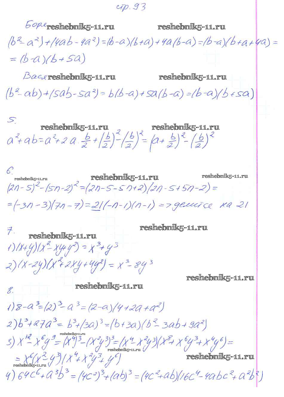 Готовая домашняя работа с ответами по Алгебре за 7 класс Колягин, Ткачева, Федорова, Шабунин Рабочая тетрадь УМК Часть 1, 2 Просвещение 2017 ФГОС - Часть 1 93