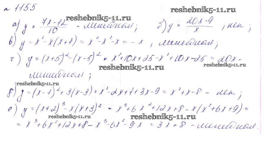Готовая домашняя работа с ответами по Алгебре за 7 класс Макарычев, Миндюк, Нешков, Феоктистов Учебник УМК Углубленный уровень Мнемозина 2013 ФГОС - Упражнения 1155