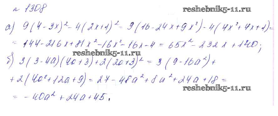Готовая домашняя работа с ответами по Алгебре за 7 класс Макарычев, Миндюк, Нешков, Феоктистов Учебник УМК Углубленный уровень Мнемозина 2013 ФГОС - Упражнения 1308