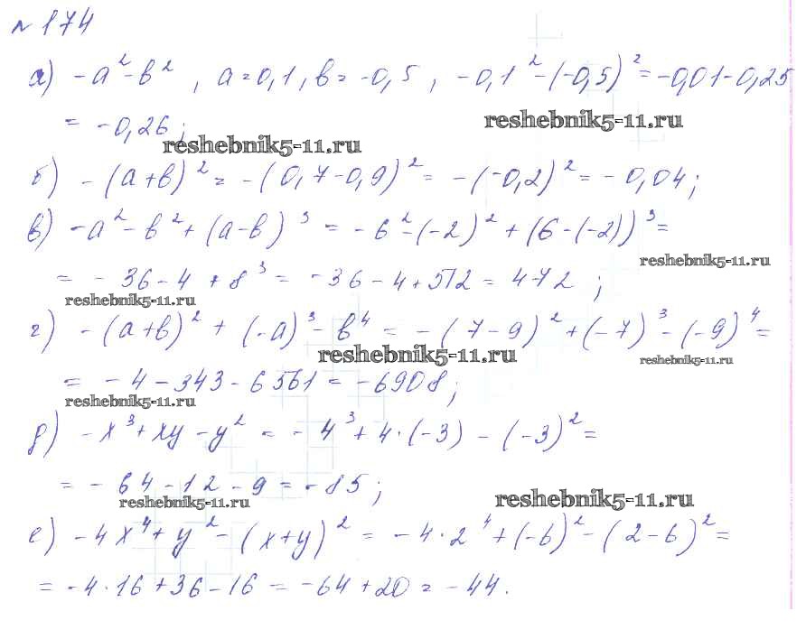 Готовая домашняя работа с ответами по Алгебре за 7 класс Макарычев, Миндюк, Нешков, Феоктистов Учебник УМК Углубленный уровень Мнемозина 2013 ФГОС - Упражнения 174
