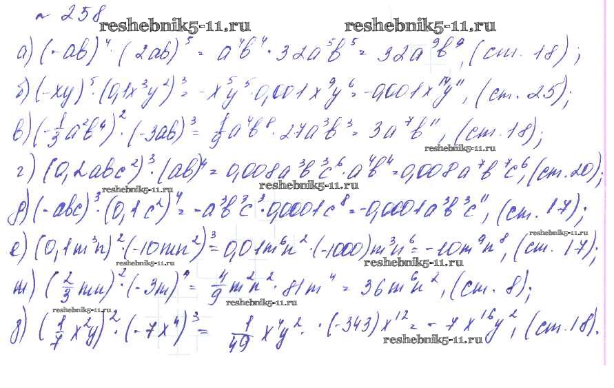 Готовая домашняя работа с ответами по Алгебре за 7 класс Макарычев, Миндюк, Нешков, Феоктистов Учебник УМК Углубленный уровень Мнемозина 2013 ФГОС - Упражнения 258