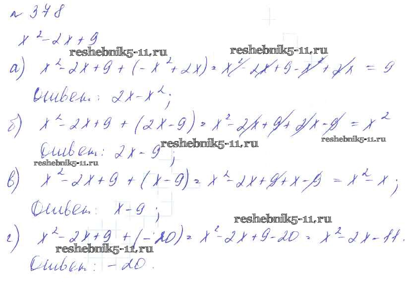 Готовая домашняя работа с ответами по Алгебре за 7 класс Макарычев, Миндюк, Нешков, Феоктистов Учебник УМК Углубленный уровень Мнемозина 2013 ФГОС - Упражнения 378