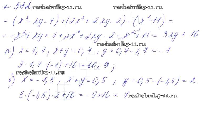 Готовая домашняя работа с ответами по Алгебре за 7 класс Макарычев, Миндюк, Нешков, Феоктистов Учебник УМК Углубленный уровень Мнемозина 2013 ФГОС - Упражнения 382