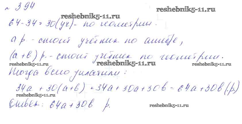 Готовая домашняя работа с ответами по Алгебре за 7 класс Макарычев, Миндюк, Нешков, Феоктистов Учебник УМК Углубленный уровень Мнемозина 2013 ФГОС - Упражнения 394