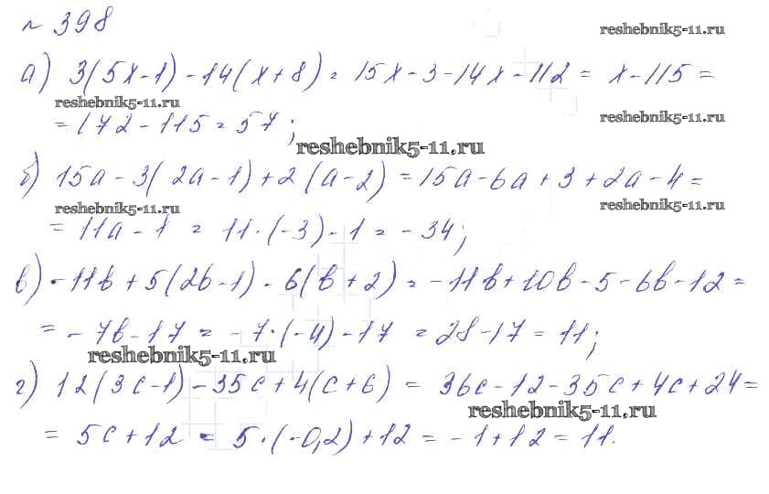 Готовая домашняя работа с ответами по Алгебре за 7 класс Макарычев, Миндюк, Нешков, Феоктистов Учебник УМК Углубленный уровень Мнемозина 2013 ФГОС - Упражнения 398