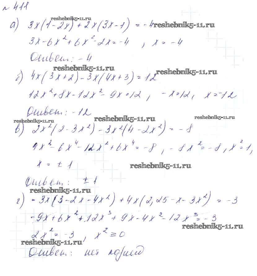 Готовая домашняя работа с ответами по Алгебре за 7 класс Макарычев, Миндюк, Нешков, Феоктистов Учебник УМК Углубленный уровень Мнемозина 2013 ФГОС - Упражнения 411