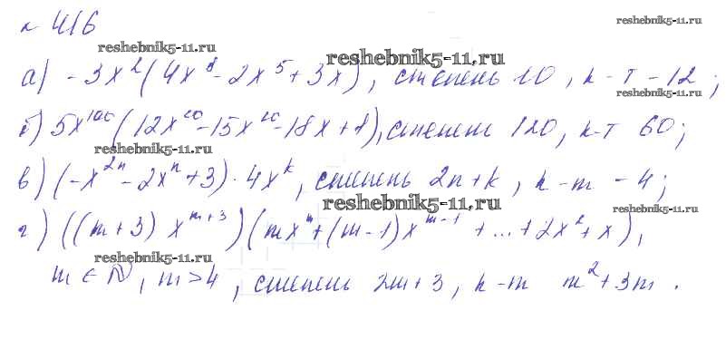 Готовая домашняя работа с ответами по Алгебре за 7 класс Макарычев, Миндюк, Нешков, Феоктистов Учебник УМК Углубленный уровень Мнемозина 2013 ФГОС - Упражнения 416