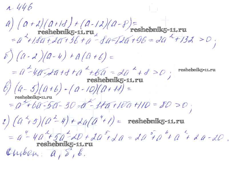 Готовая домашняя работа с ответами по Алгебре за 7 класс Макарычев, Миндюк, Нешков, Феоктистов Учебник УМК Углубленный уровень Мнемозина 2013 ФГОС - Упражнения 446