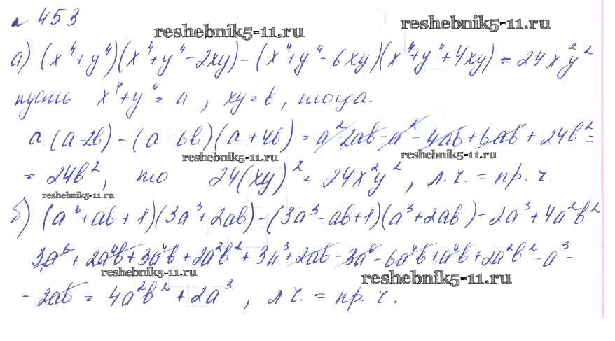 Готовая домашняя работа с ответами по Алгебре за 7 класс Макарычев, Миндюк, Нешков, Феоктистов Учебник УМК Углубленный уровень Мнемозина 2013 ФГОС - Упражнения 453