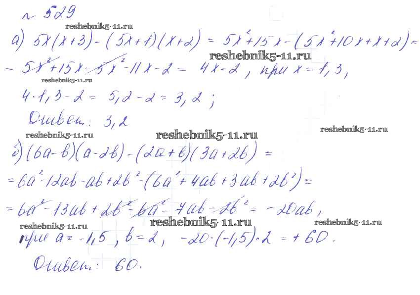 Готовая домашняя работа с ответами по Алгебре за 7 класс Макарычев, Миндюк, Нешков, Феоктистов Учебник УМК Углубленный уровень Мнемозина 2013 ФГОС - Упражнения 529