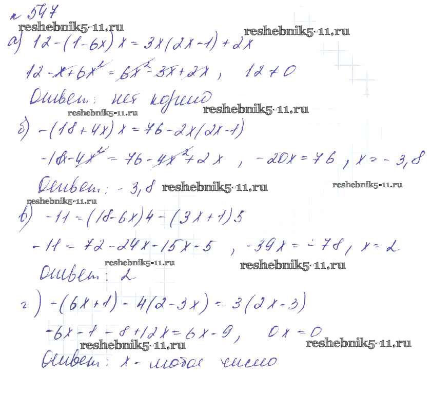 Готовая домашняя работа с ответами по Алгебре за 7 класс Макарычев, Миндюк, Нешков, Феоктистов Учебник УМК Углубленный уровень Мнемозина 2013 ФГОС - Упражнения 547