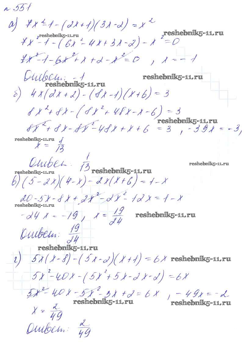 Готовая домашняя работа с ответами по Алгебре за 7 класс Макарычев, Миндюк, Нешков, Феоктистов Учебник УМК Углубленный уровень Мнемозина 2013 ФГОС - Упражнения 551